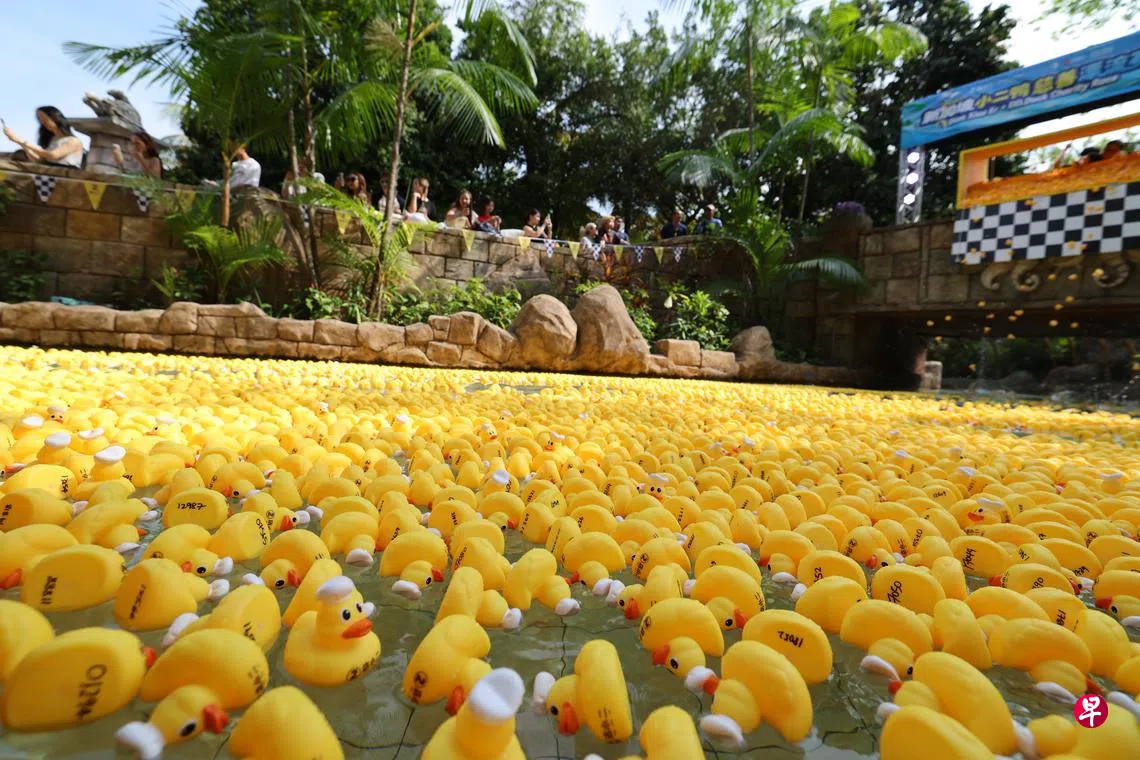 餐饮业者店小二与圣淘沙名胜世界,星期二(7月22日)在圣淘沙水上探险乐园(Adventure Cove Waterpark),举办一场别开生面的小黄鸭慈善漂流赛。