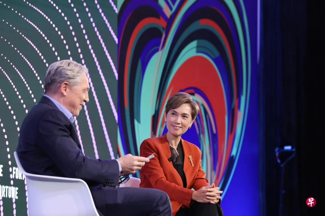 这场峰会主题为“智能时代”,杨莉明与《财富》杂志亚洲版执行编辑钱德勒(Clay Chandler)进行对话,为峰会掀开序幕。