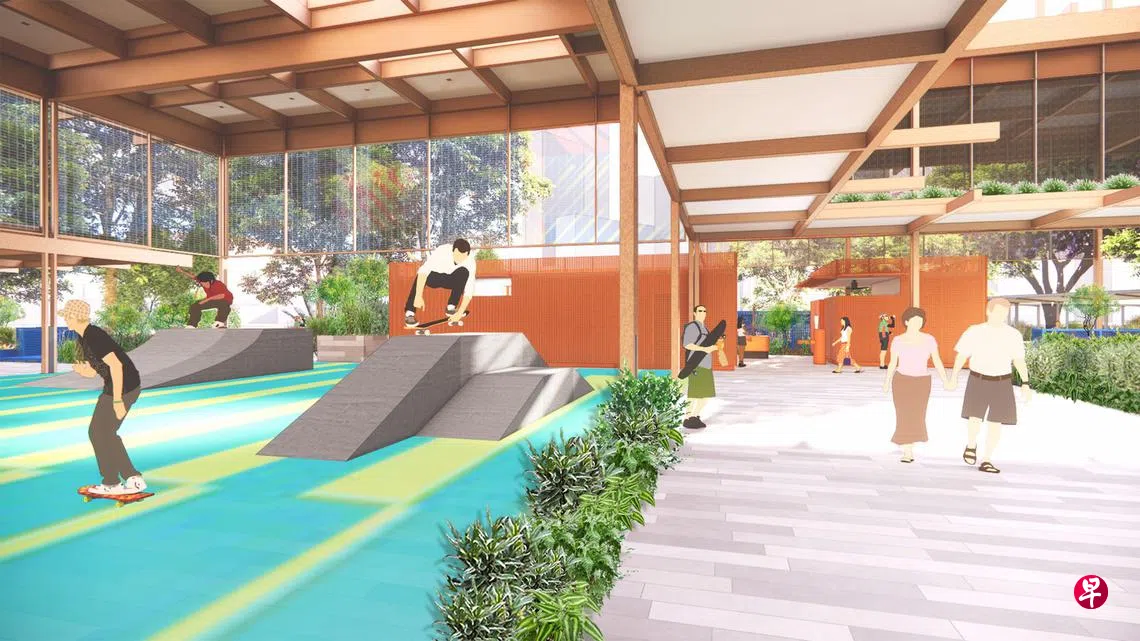 在广受年轻人欢迎的滑板公园(Skate Park),新构思包括加盖遮棚,让年轻人无论晴天雨天都可以来活动。未来这里还将增设BMX波浪形骑行道、多用途活动空间,以及脚踏车停放设施、淋浴、储物柜和自动贩卖机。