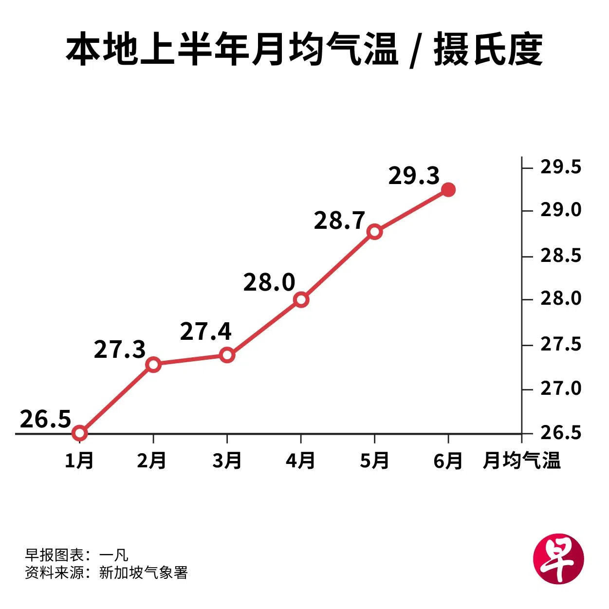 2024年是我国最热的一年,也是连续四年录得10年最高平均气温。本地今年上半年的每月平均气温持续上升,从1月的26.5摄氏度攀升至6月的29.3摄氏度。