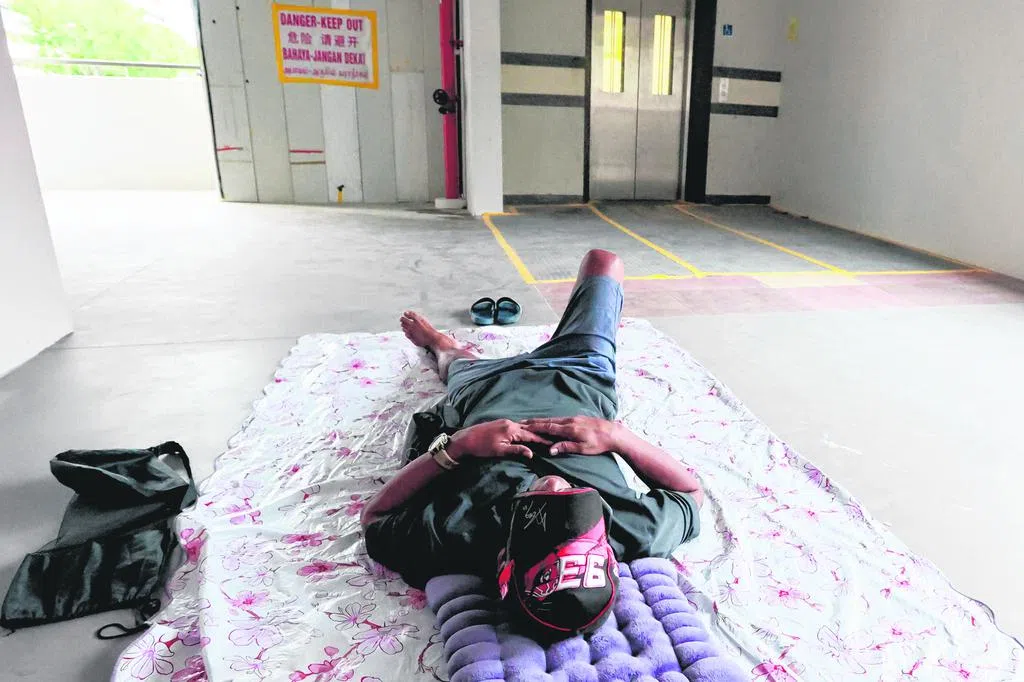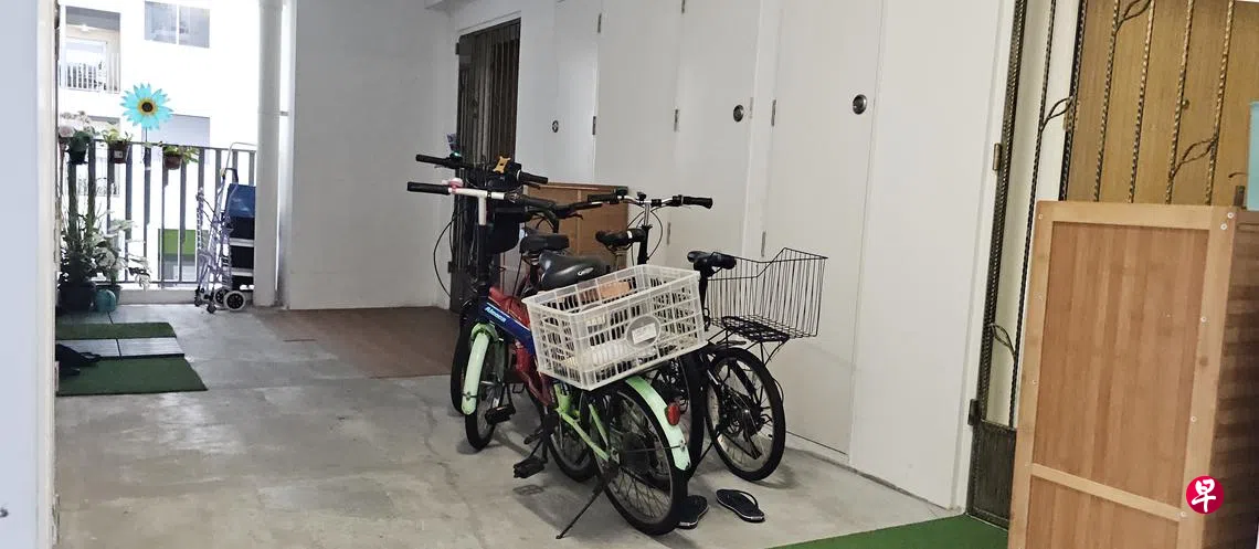 淡滨尼居民指组屋楼下脚踏车停车位不足,停放在住家外的走廊却遭邻居投诉,倍感无奈。