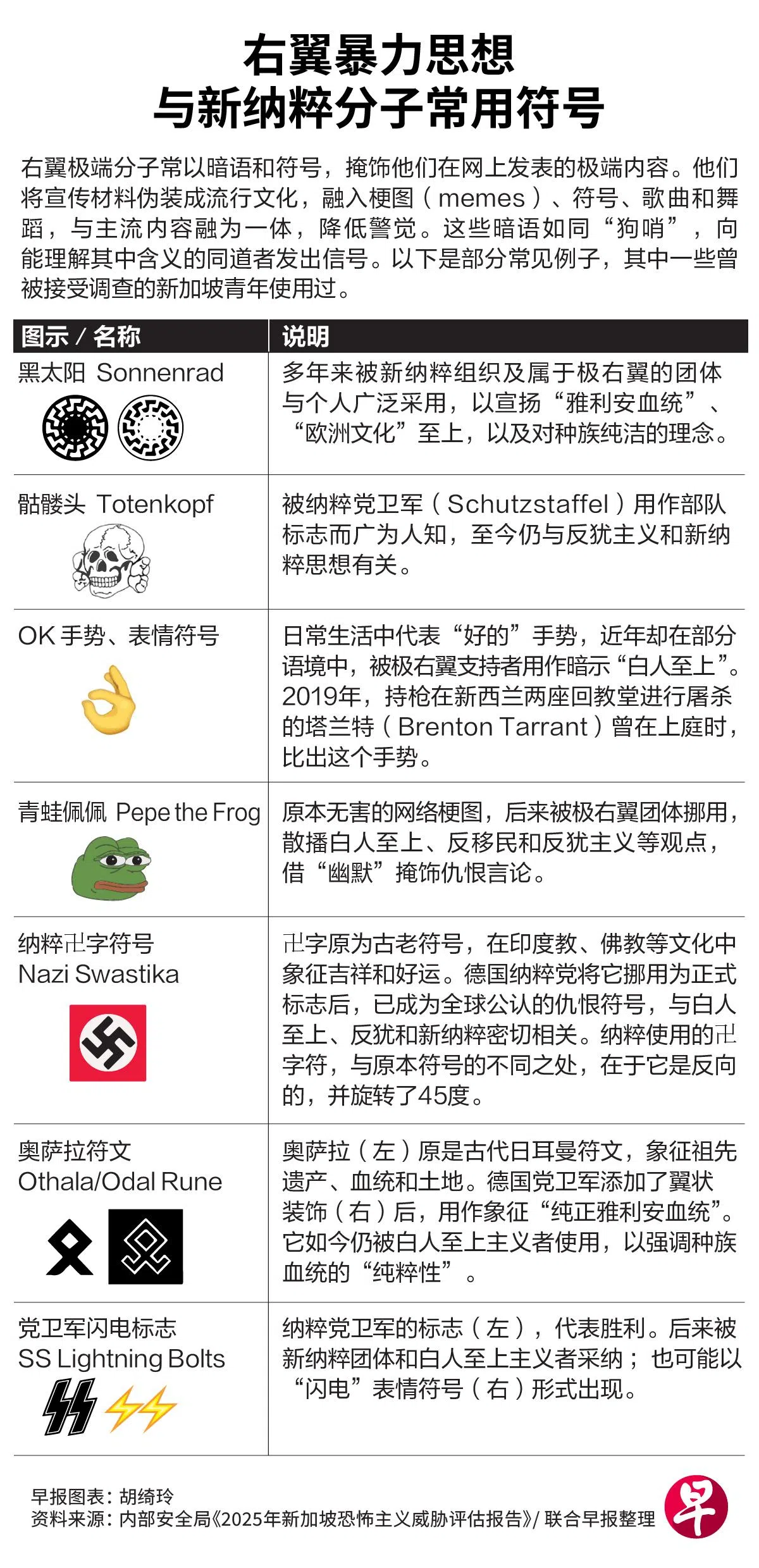 新加坡面对的恐怖威胁更为严峻的原因,还包括极右翼极端主义叙事,在网络上受到越来越多的关注与传播。极右翼极端主义原本根植于白人至上主义的思潮,但它因为反移民、反回教,以及反犹太观念的驱动,已经开始得到其他族群的个人认同。