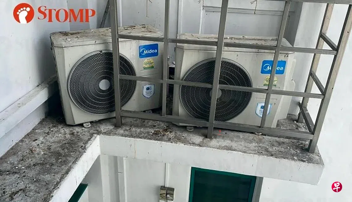 他向STOMP透露,目前放置冷气槽的架子附近满是鸟粪和鸟巢残存的杂物,甚至已经导致冷气槽也堵塞,卫生情况堪忧。
