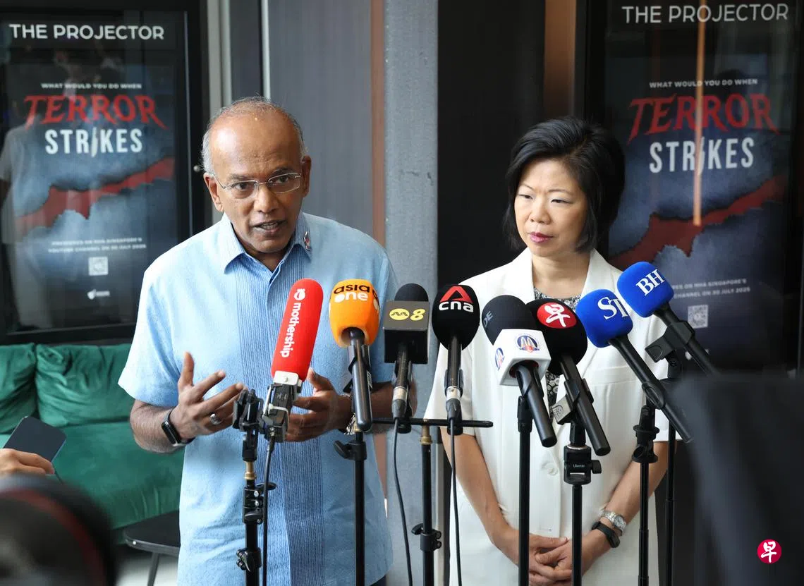 国家安全统筹部长兼内政部长尚穆根星期三(7月30日)在全国保家安民计划(SGSecure)活动场边,接受本地媒体访问,谈及近来滥用含依托咪酯(etomidate)成分的“丧尸烟弹”(Kpods)课题。