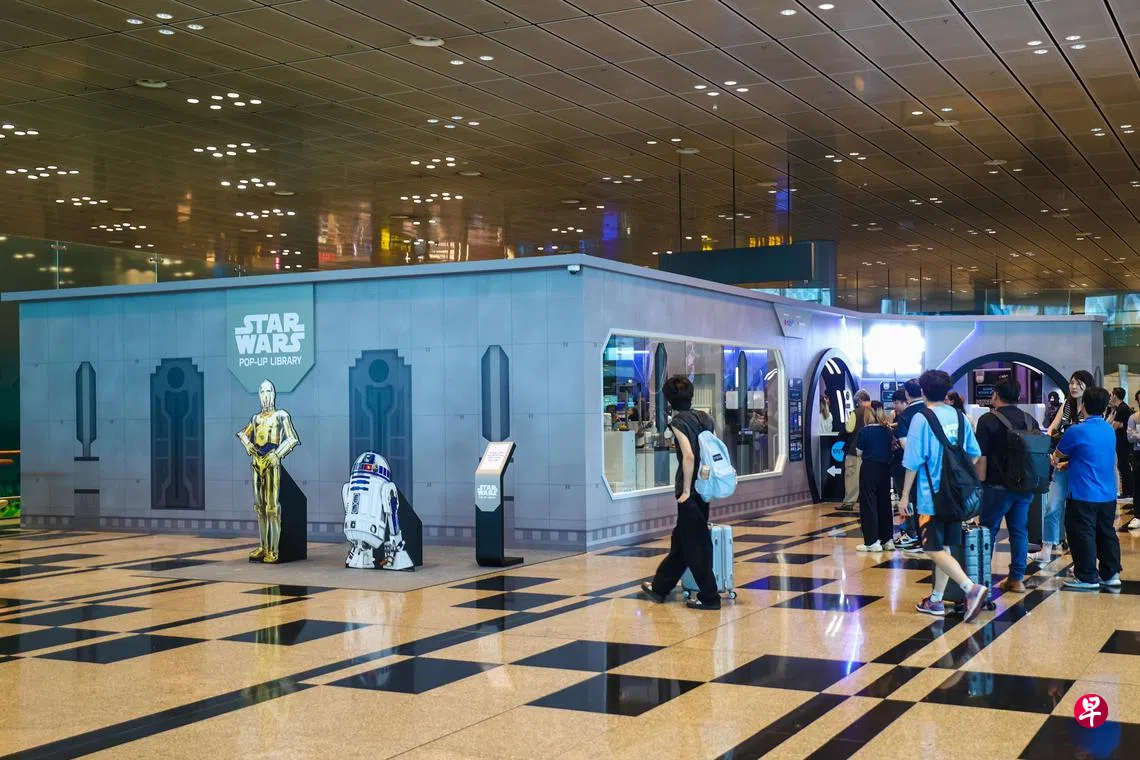 《星球大战》主题的快闪图书馆,星期三(8月6日)在樟宜机场启用,不仅拥有超过2000本《星球大战》的图书、小说和漫画,公众还可参与互动问答和打卡拍照。