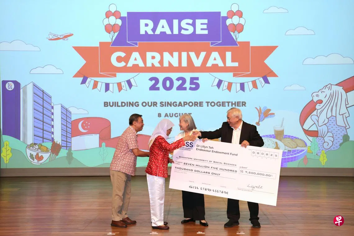 新社科大在新加坡庆祝建国60周年之际,迎来建校以来最大笔个人捐款。热心教育公益的郑丽华博士(Dr Lillyn Teh)捐出750万元,支持新社科大的教育普及计划(SUSS Education Access Initiative)迈入新阶段,为低收入家庭的学子提供额外资助,确保他们顺利完成学业。