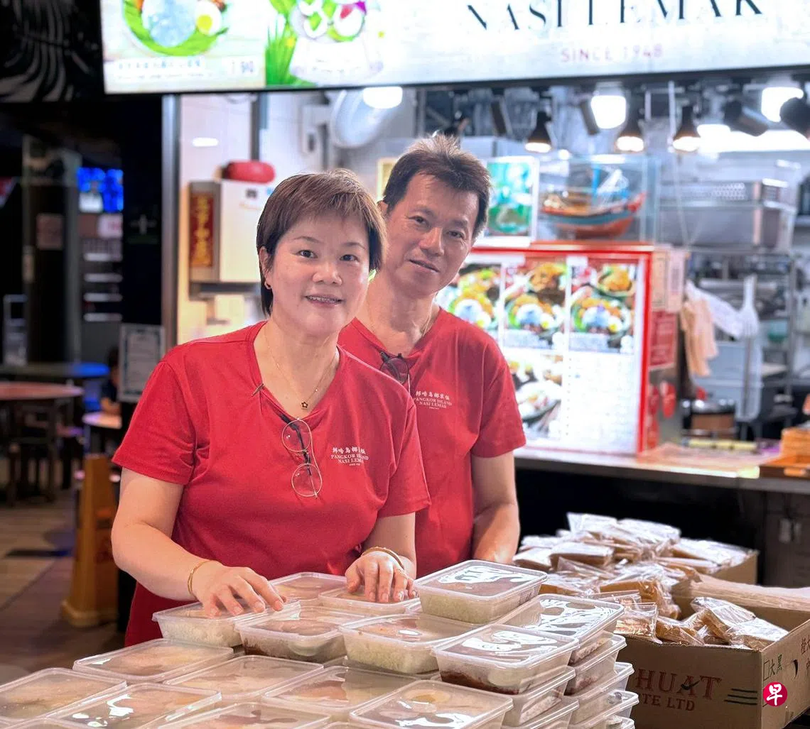 在武吉坎贝拉小贩中心售卖椰浆饭的夫妻陈锦源(65岁)和骆碧贞(50岁),星期六(8月9日)清晨4时左右抵达档口后,就马不停蹄地准备食材,希望早上9时30分能准点开始,免费分发200份餐食给有需要的年长者。