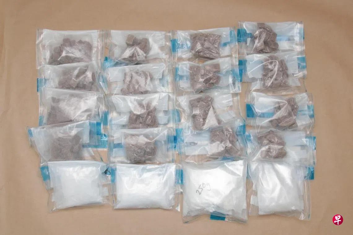 39岁男子当时身怀约60克冰毒和芽笼一家酒店的房卡。肃毒人员在酒店客房起获约1421克海洛英、62克冰毒和吸毒用具。