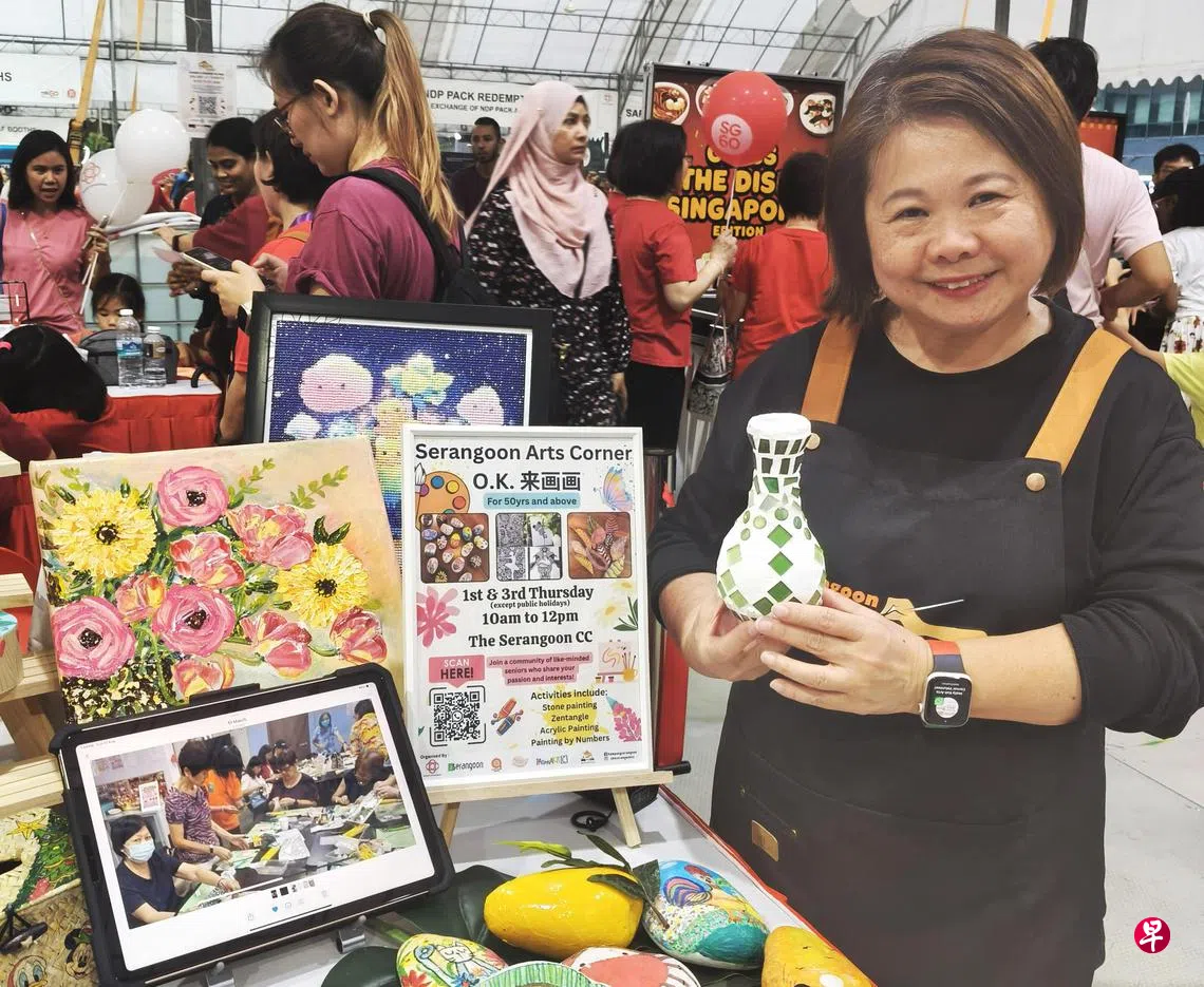 从未接触过美术的陈尤兰,观看YouTube视频自学亚克力画,随后又报名参加课程,进一步学习亚克力画、禅绕画(zentangle)、炭笔画等,爱上了画画。