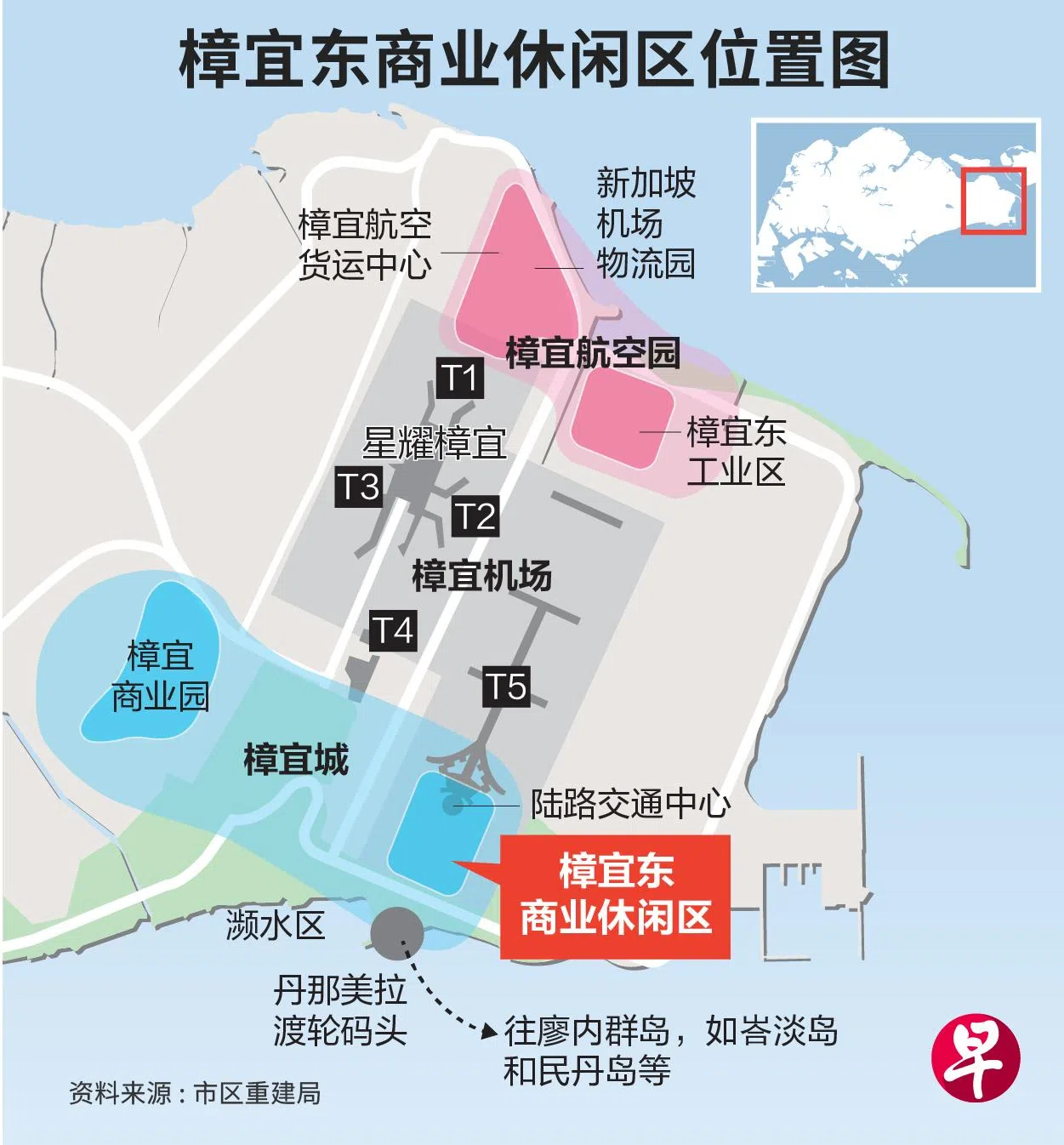 根据市区重建局的网站,樟宜地区的发展主要分三大部分——樟宜航空园、樟宜机场和樟宜城(Changi City)。