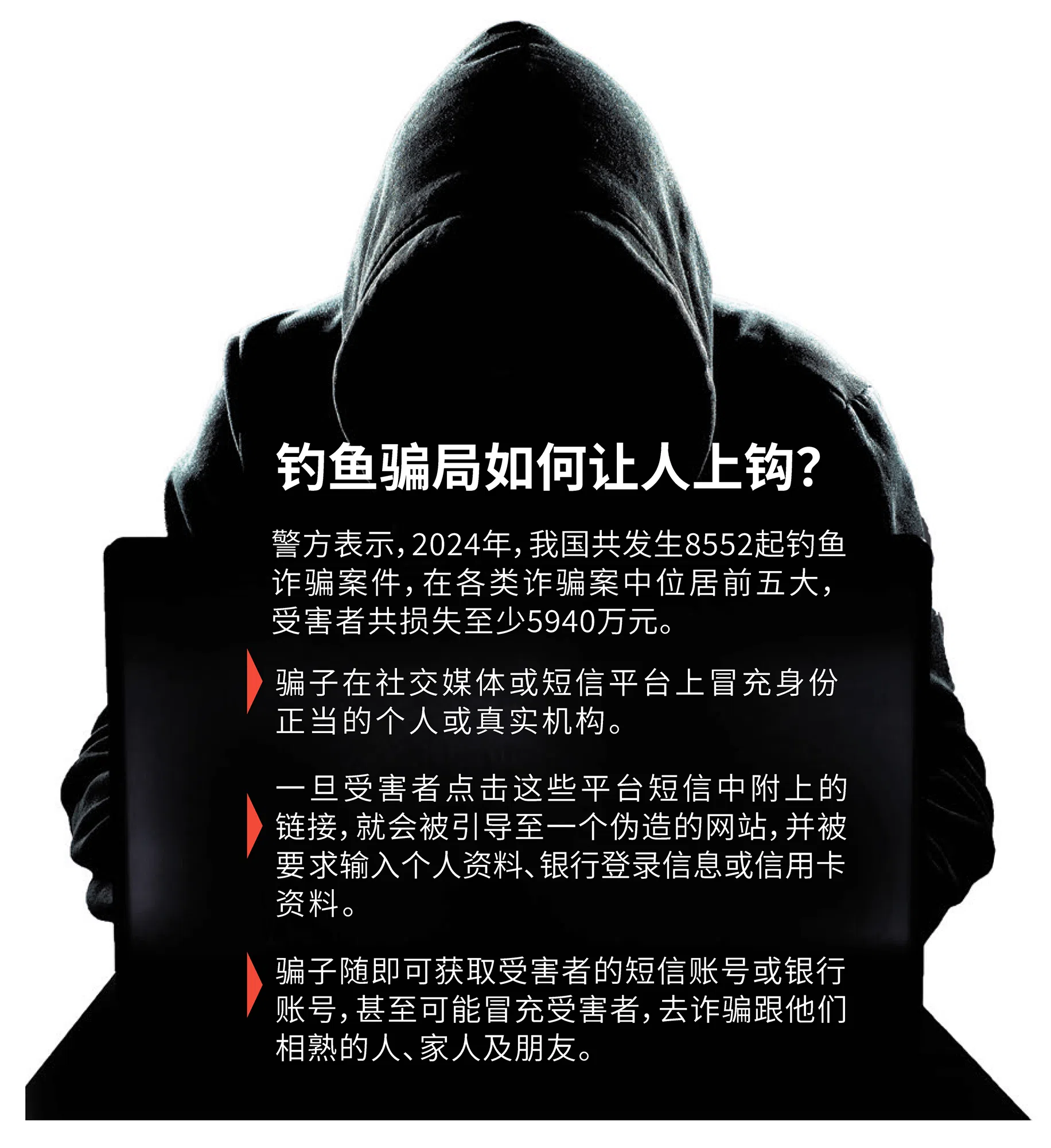 所谓钓鱼骗局,就是诱骗人点击恶意链接,或泄露个人信息的诈骗手法。
