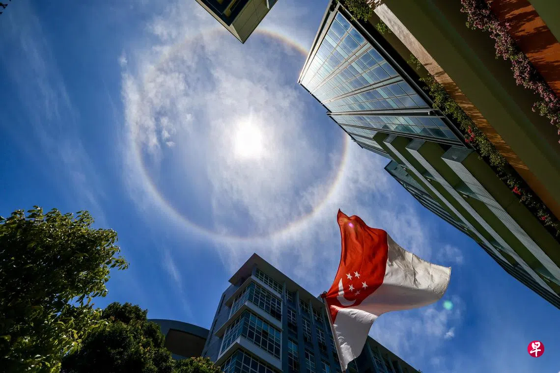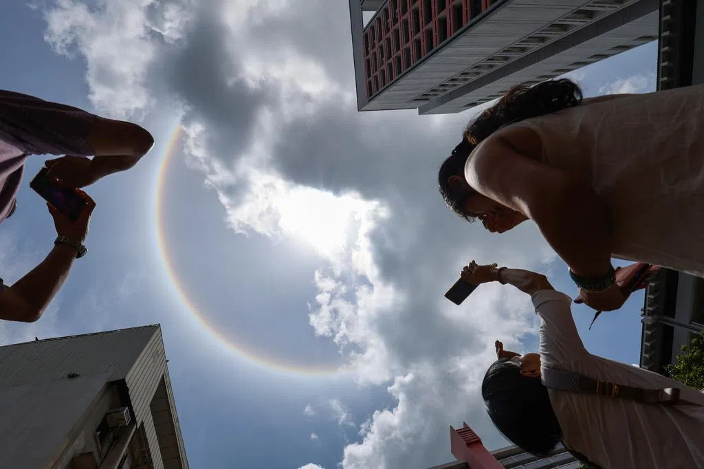 许多新加坡人星期一(8月25日)中午抬头,发现岛国上空出现日晕奇观。兴奋的公众纷纷举起手机,把这一奇景拍下来,并放上网与众人分享。