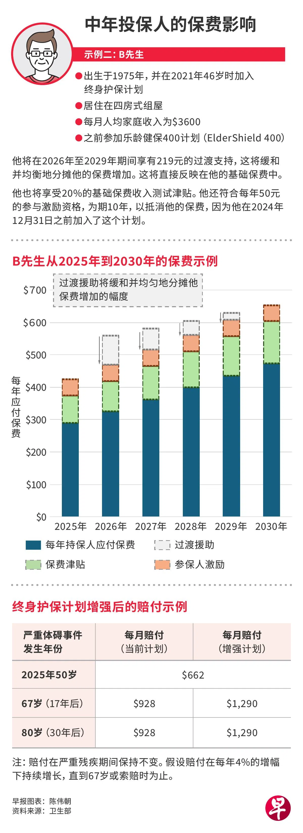政府也会按计划调整针对年长者的承保标准,保费会相应减少。目前,对1979年及之前出生的年长者来说,终身护保仍是可选项目。