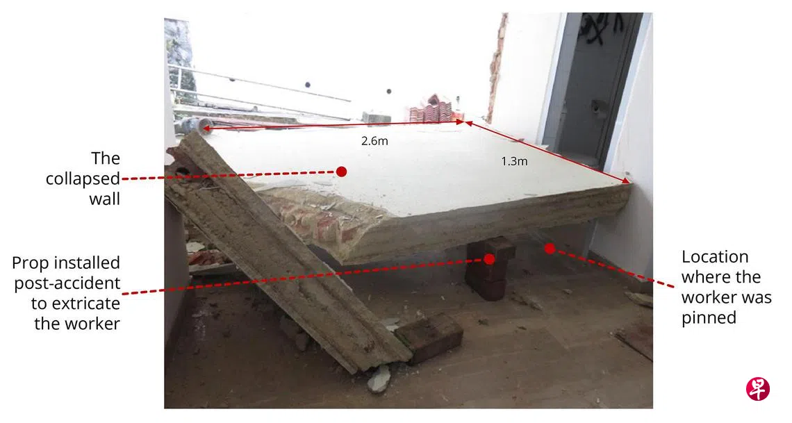 人力部的调查官指出,死者在拆除墙体时,向来由墙底开始凿开墙壁,这样一来,当墙壁上方无法支撑墙体重量,便会顺势落下,可省去拆除时间。然而,这样的做法并不安全,因为墙壁可能突然倒塌,而工人因为无从预测墙体落下的方向,很可能来不及闪避而被墙壁压倒。