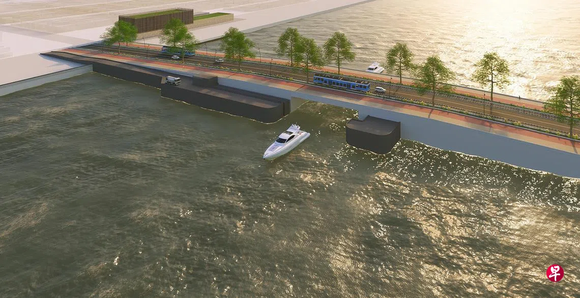 南部濒水区部分沿岸也会落实其他护岸措施,例如在滨海南拟建海堤;加建滨海堤坝现有的护岸措施,弥合冠形铁闸(crest gate)和桥梁的间隙;在巴西班让拟建护岸措施。