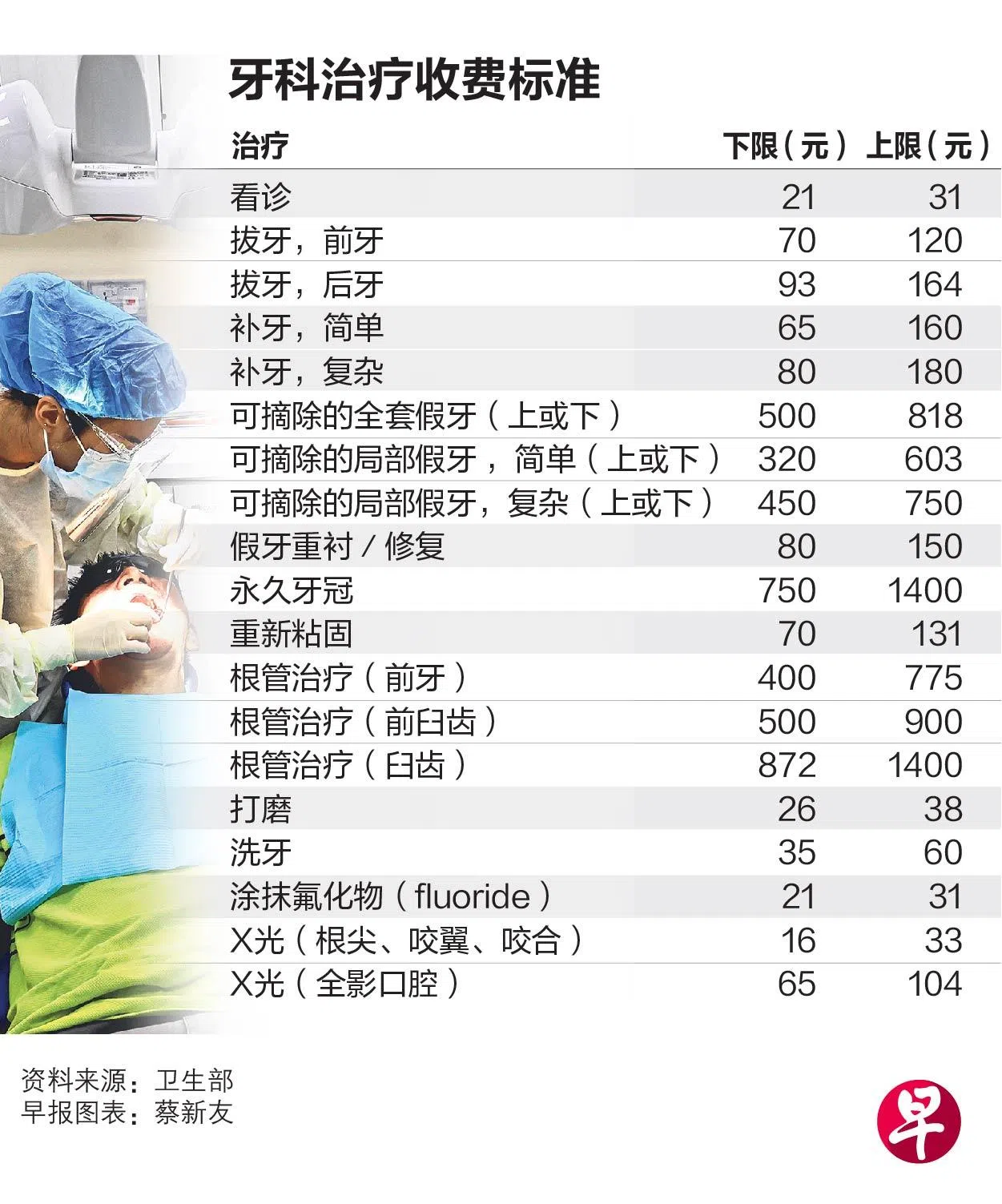 根据卫生部星期一(9月1日)发布的文告,这个收费标准不是强制性的收费上限,而是为病患和牙科诊所提供的参考。