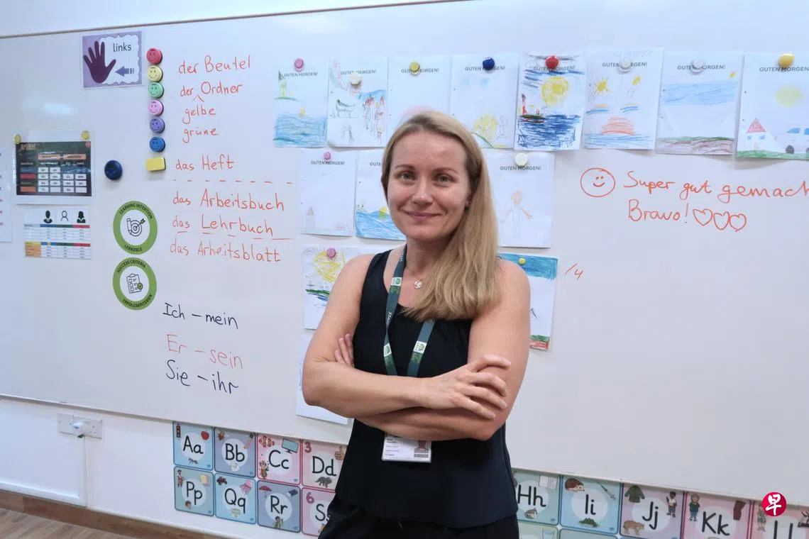 冠病疫情期间,她凭借语言优势和教学热忱,受聘于新加坡德国人学校,在小学部为来自世界各地的学生教授德语作为第二语言。