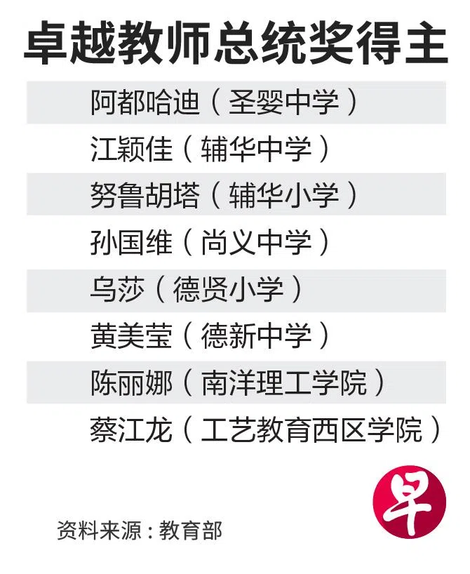 八名杰出教育工作者从4700多名教师中脱颖而出,获颁今年的卓越教师总统奖。