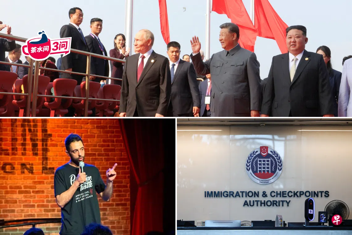 中国于星期三(9月3日)在北京天安门广场举行纪念抗战胜利80周年的盛大阅兵仪式,展示多款新型武器装备。中国国家主席习近平、俄罗斯总统普京以及朝鲜最高领导人金正恩罕见同台,一起登上天安门城楼观看这场中国历史上规模最大的阅兵式。此次阅兵共有26位国家领导人出席,其中包括印度尼西亚总统普拉博沃;他虽早前因印尼国内抗议宣布取消访华,但最终仍出席。新加坡副总理兼贸工部长颜金勇也代表出席,他强调铭记历史的同时也要展望未来,并指出新加坡将继续与所有伙伴合作,维护地区的和平与稳定。美国总统特朗普则在社交媒体上祝贺中国的同时,发表带有讽刺意味的评论,指中俄朝密谋对抗美国;俄方迅速否认相关指控。