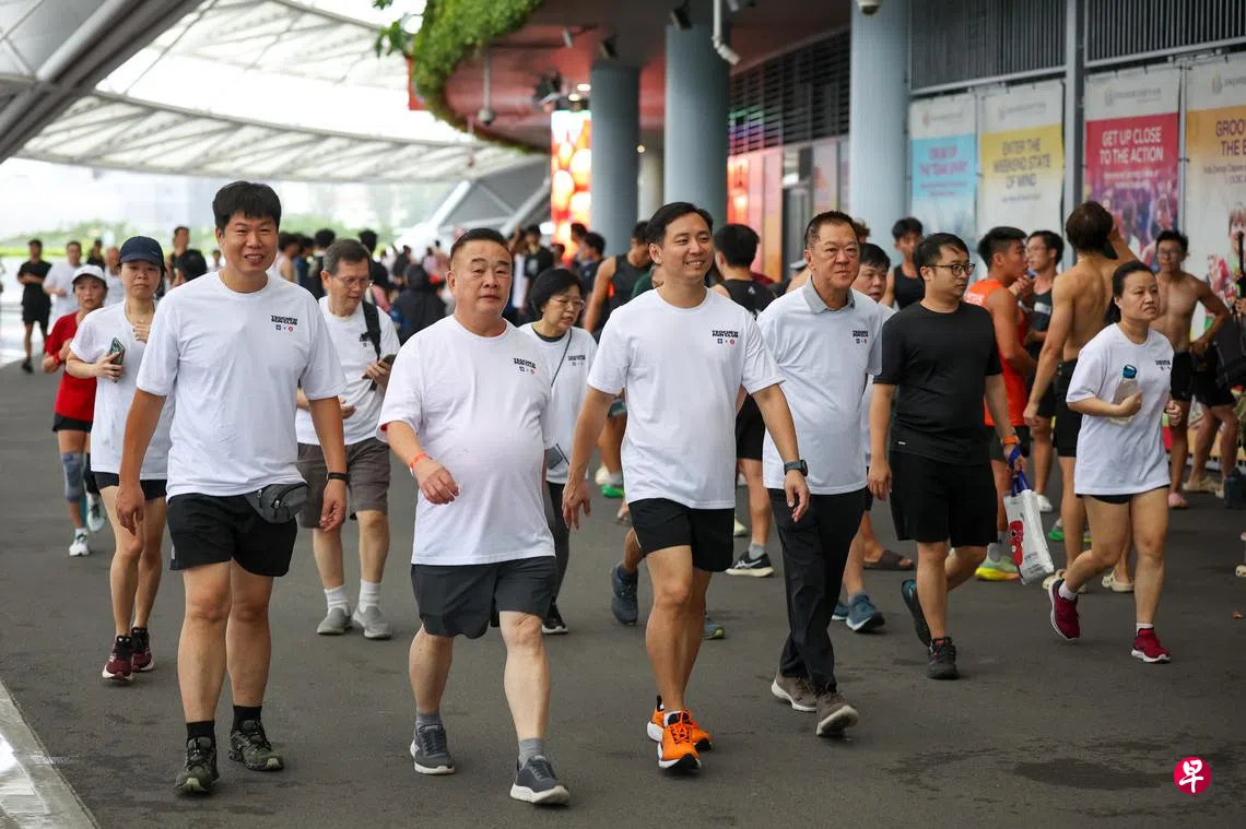 尽管星期天(9月7日)清晨本地多处都下雨,约350人仍齐聚新加坡体育城,参加潮州人跑步、健行活动“行起来·家己人”。