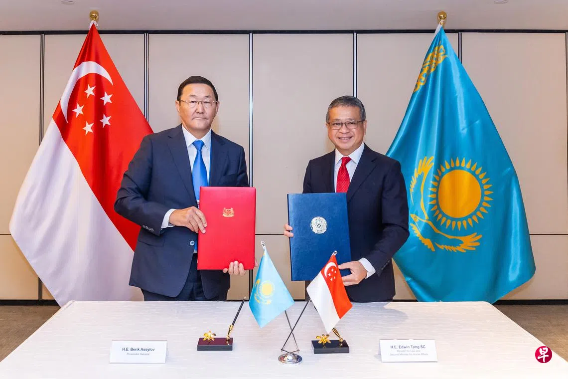 唐振辉星期一也代表新加坡,与哈萨克斯坦签署刑事司法互助协定,加强两国在预防和打击犯罪方面的合作。这是新加坡首次与中亚国家签署这类协定。
