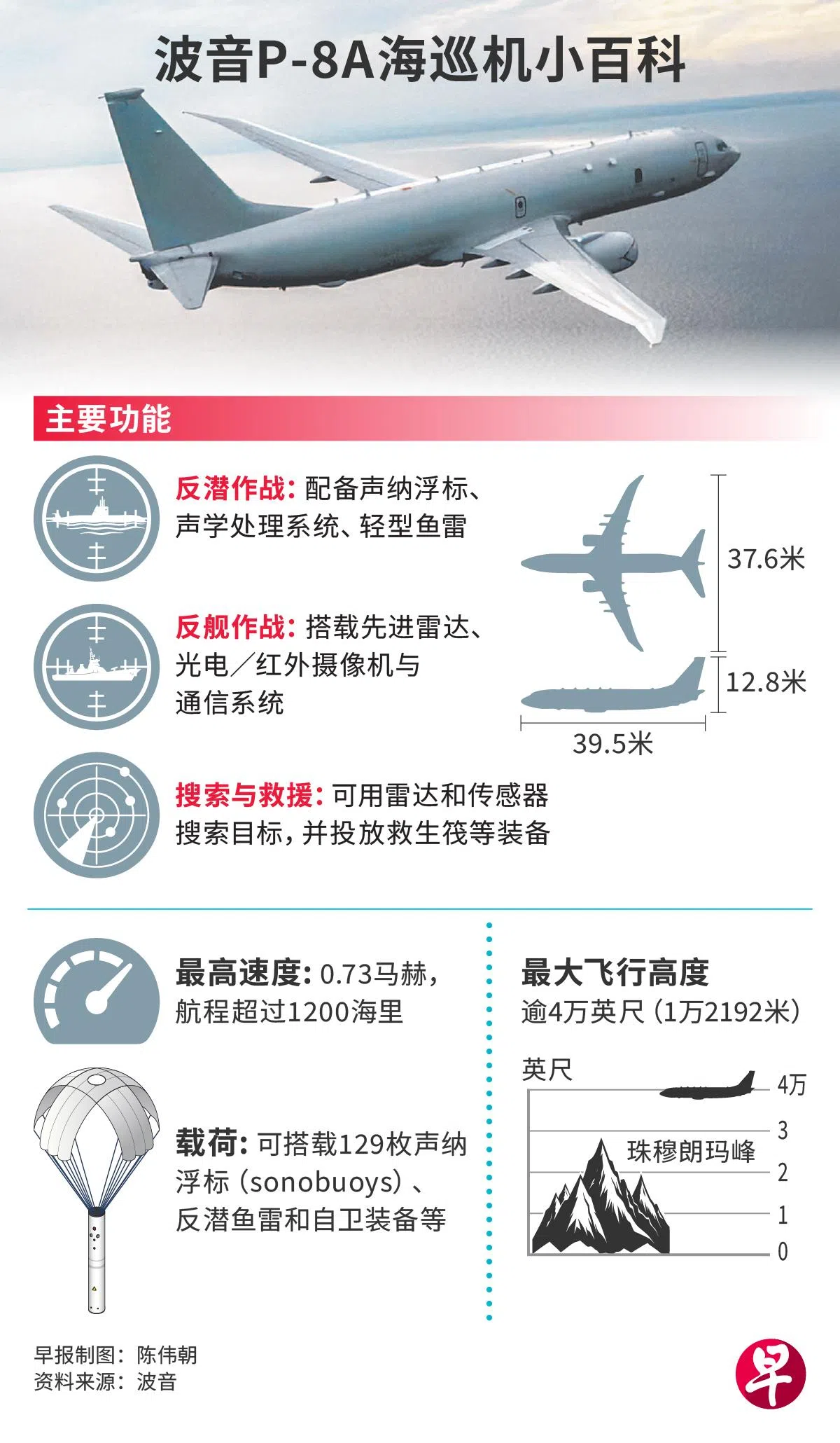他强调,P-8A是目前最先进的海巡机之一,配备先进的雷达、电子侦测,以及声纳浮标系统,能执行从反潜到远距离搜救等多样任务。“它是一架喷气式飞机,相比市面上大多数以螺旋桨驱动的飞机,能更快抵达远方海域执行任务。”