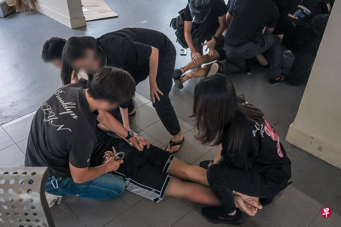 星期三傍晚,肃毒员在直落布兰雅坡一座组屋底层,逮捕两名分别为26岁和28岁的男子。两人被捕时激烈反抗,但最终被肃毒员制伏。
