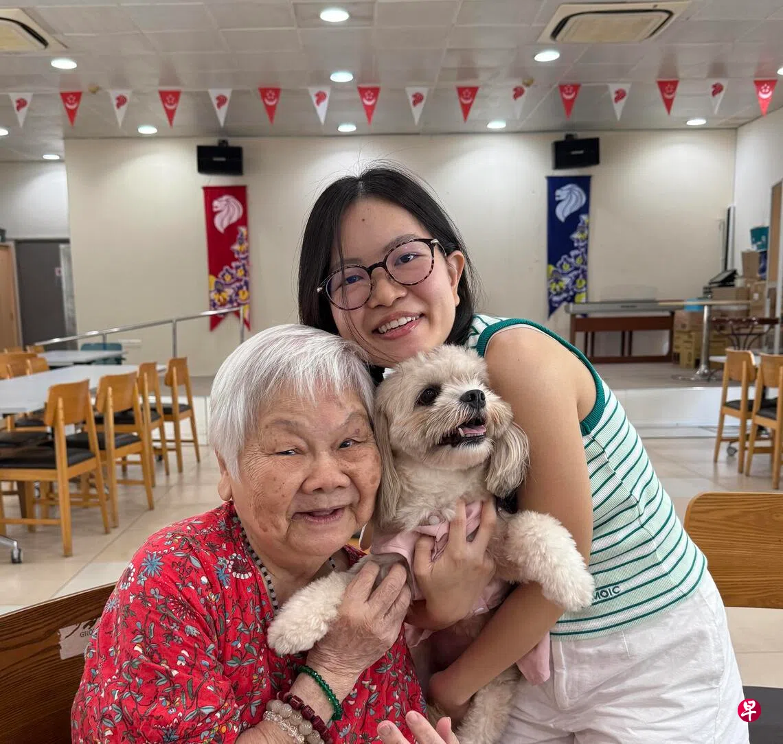 胡嘉惠就住在安老院旁的组屋。在邻居介绍下,她去年初带着吉拉开始到乐龄之家“当义工”。