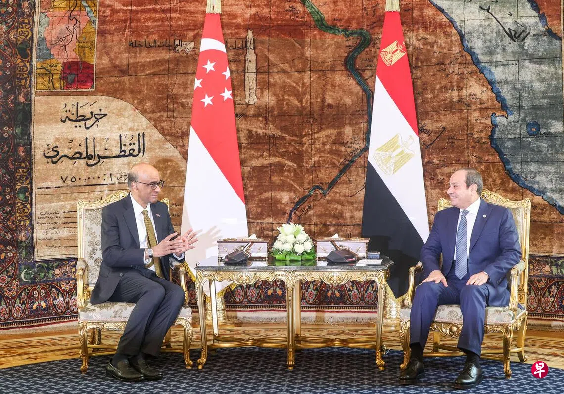 总统在当地时间星期六较迟时将与埃及总理马德布利会面,并出席隔天举行的新加坡埃及商业论坛。由新加坡工商联合总会主席张松声率领的商务团,下星期一(22日)也会陪同总统走访苏伊士运河经济特区。
