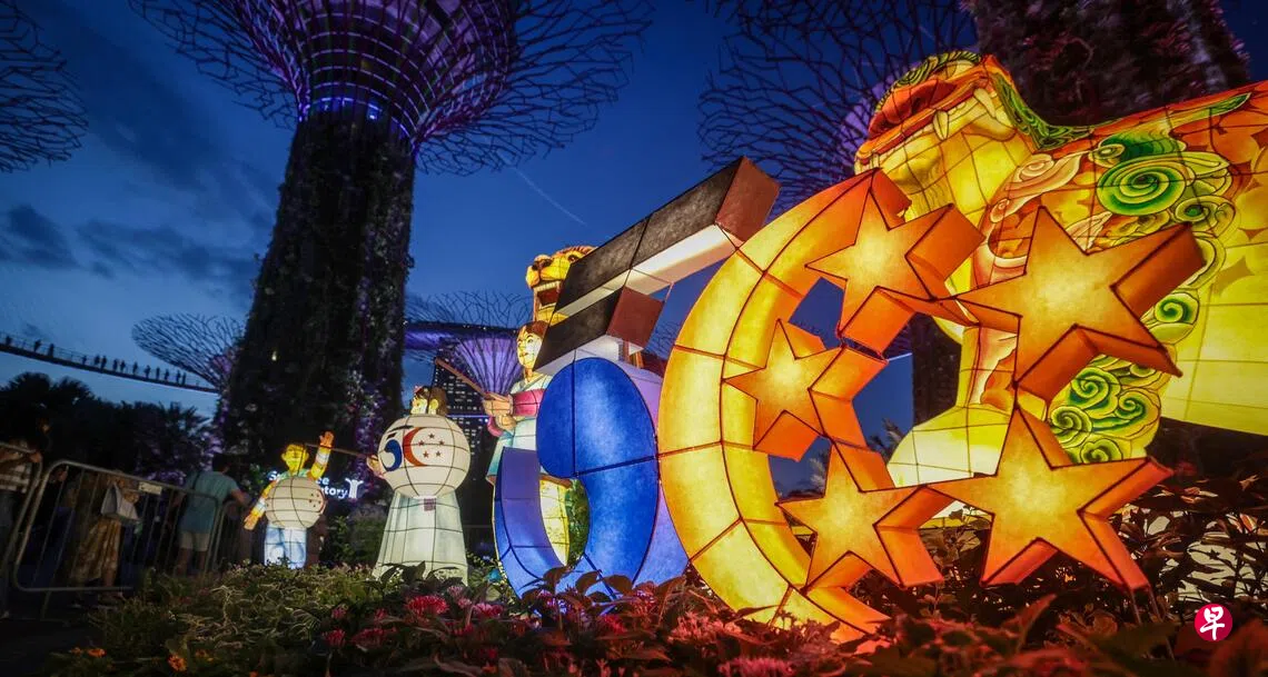“滨海花园庆中秋”活动于星期一(9月22日)晚举行亮灯仪式。活动以“同在忆起”为主题,除了上述与国际合作呈现的灯组,亮点还有本地熟悉的红龟粿女孩与好友们组成的灯笼组合,通过传统游戏或童年美食灯饰重现国人共有的记忆,展现邻里同庆中秋的氛围和甘榜精神。
