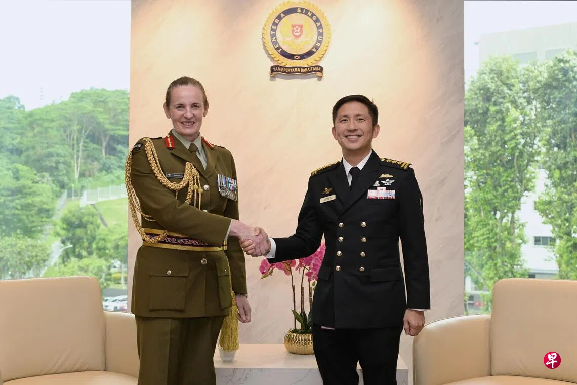 来新访问的新西兰陆军总长罗斯·金少将,星期一(9月22日)会见新加坡武装部队总长孟耀诚海军中将。双方重申两国军队长久密切的关系,并探讨深化防务合作。