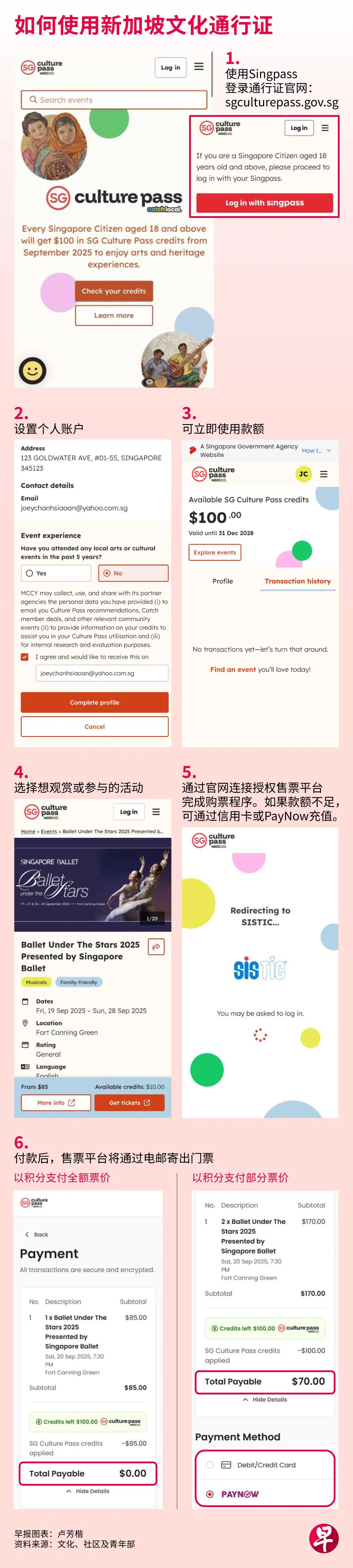 新加坡文化通行证计划9月1日启动,截至9月15日有超过32万名公民完成注册,在首两周内使用逾180万元的储值额度。