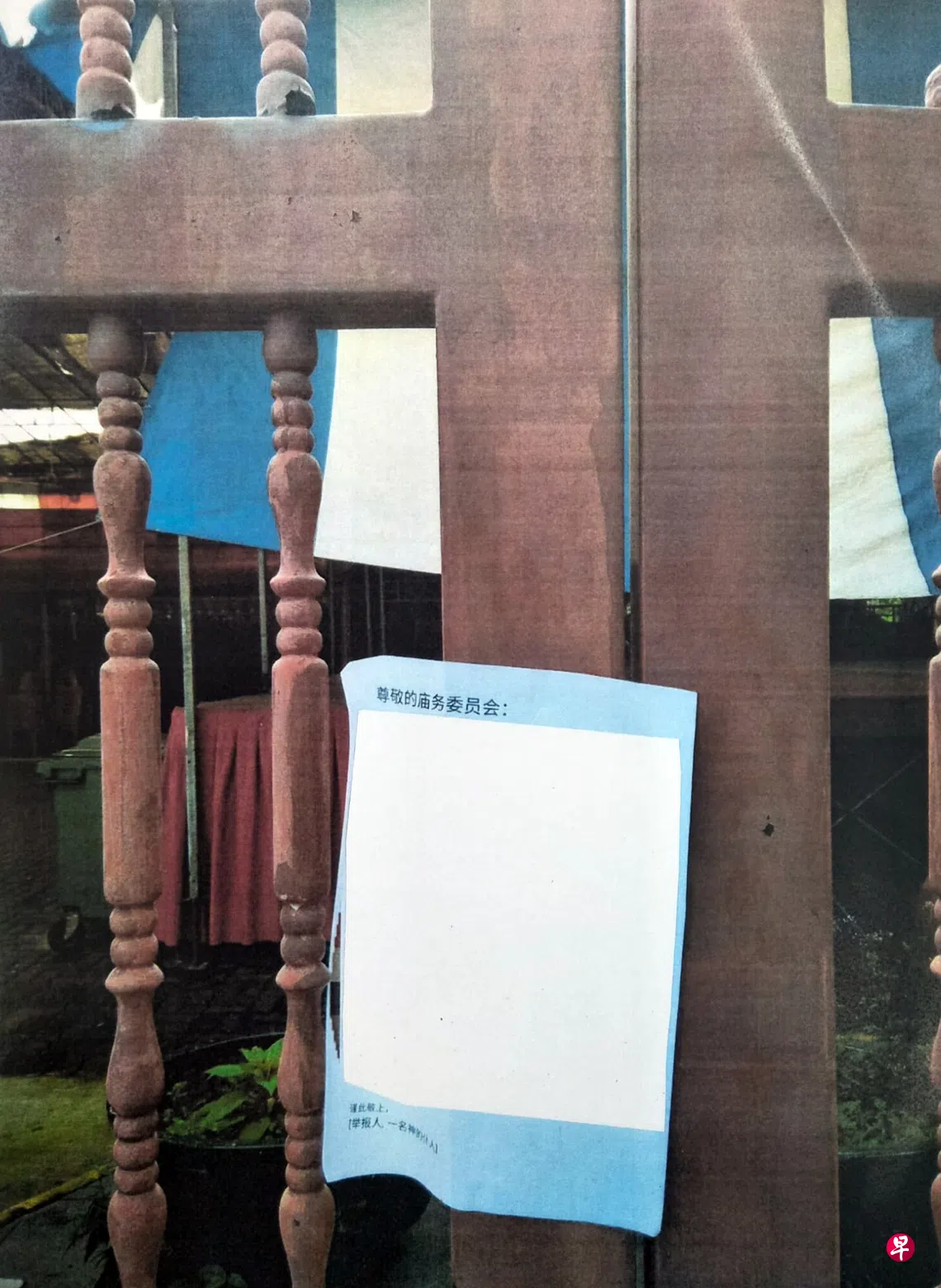 苏保章说,庙方曾回复电邮,请对方19日现身说法,但对方却没有出现。到了18日,庙方就收到通知,指有人在四周围多处张贴八张写有负面内容的大字报。