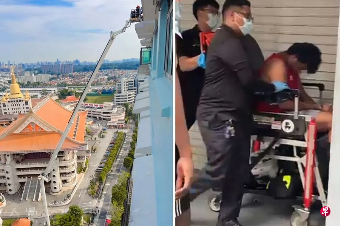 21岁男子将自己反锁在通往屋顶的25楼楼梯间,警方和民防部队大阵仗到场,出动警犬寻人,甚至使用云梯救援。