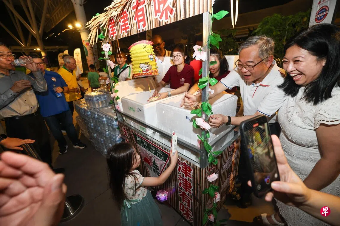 现场除了可品尝传统潮州月饼和糕点,居民也可以参加灯谜挑战,以及动手做灯笼,活动的高潮是众人提灯笼绕行榜鹅综合社区中心。
