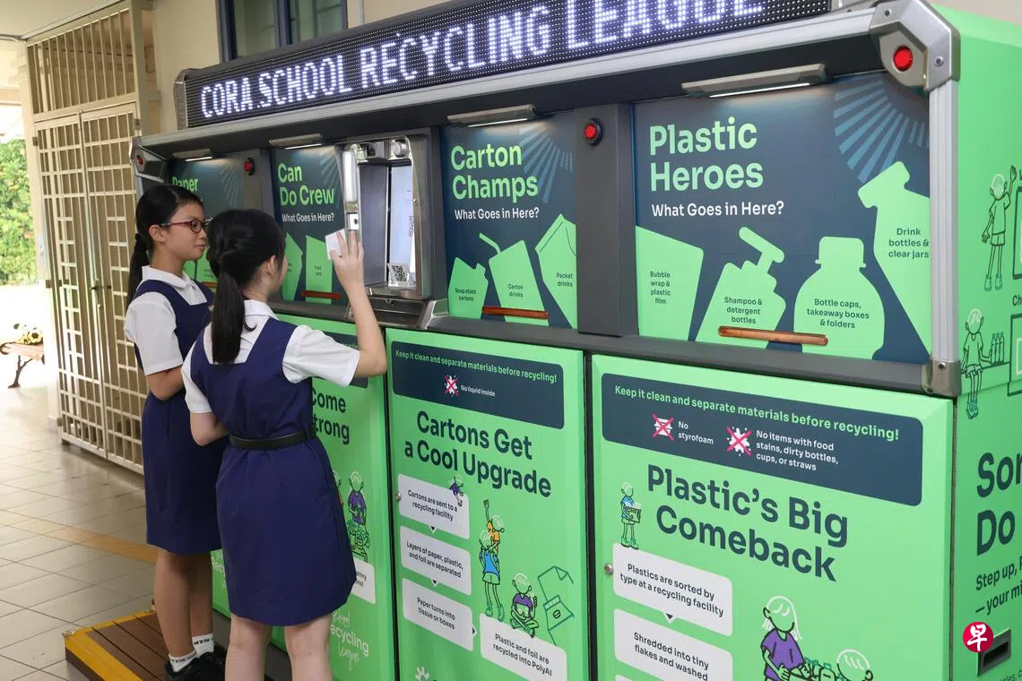 这是废物管理公司“可瑞环境”(Cora Environment,前身为SembWaste)和弥陀学校的合作项目。弥陀学校是去年可瑞校园回收活动(Cora School Recycling League)小学组的金奖得主,并获选为首个参与智能回收垃圾站(Recycling Hub,简称REhub)试点的学校。