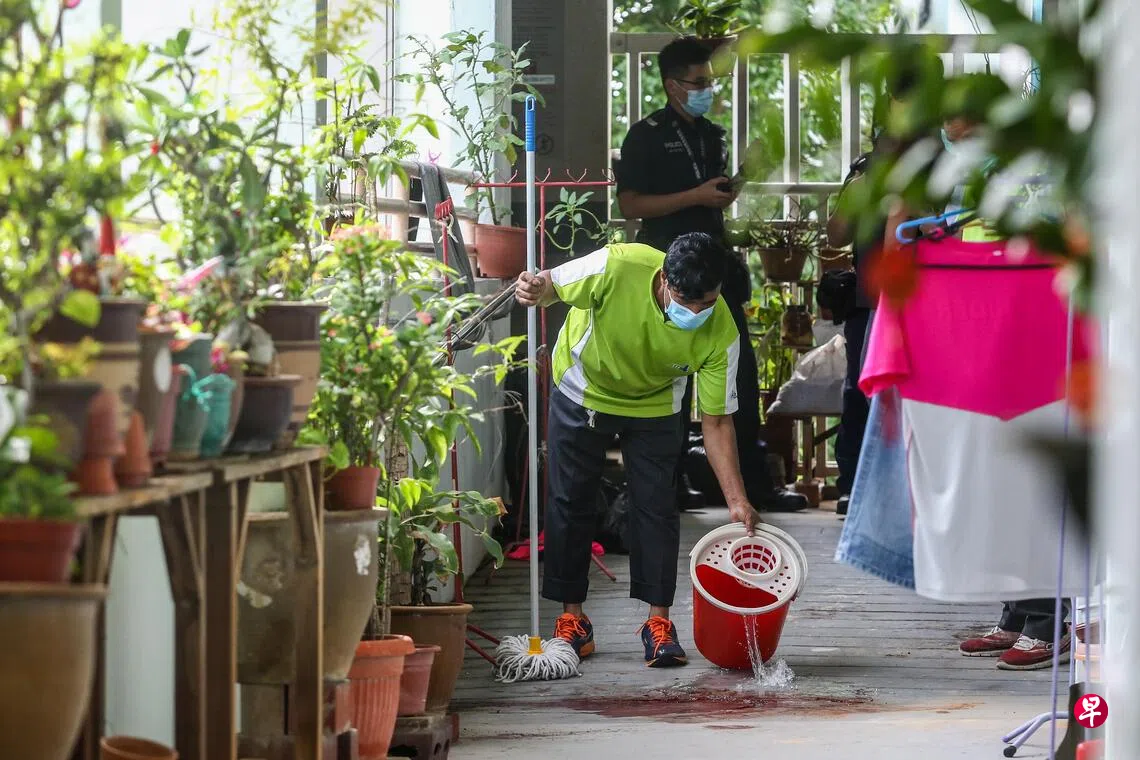 这起命案发生在2021年7月15日凌晨约零时55分,地点在宏茂桥3道第562座组屋五楼走廊。