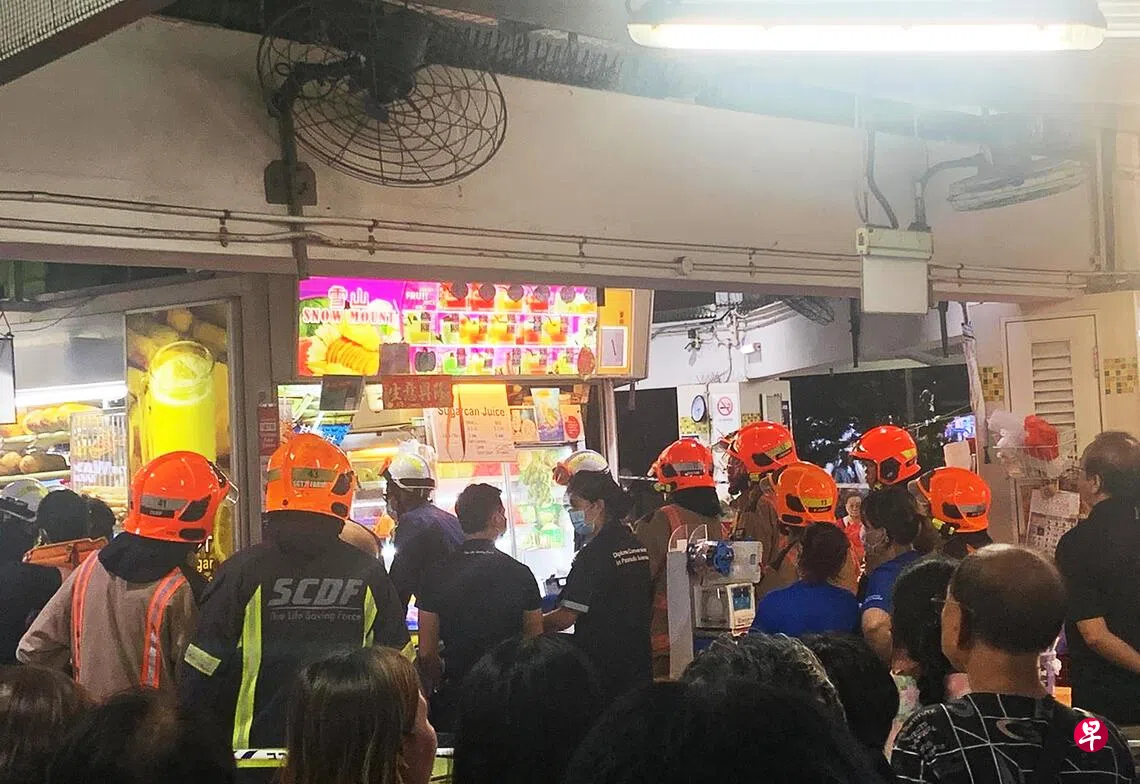 目击者李先生(69岁)说,当时他正和朋友坐在对面咖啡店吃东西,突然看到很多人跑去其中一个摊位,不久后就看到多名民防人员赶来。