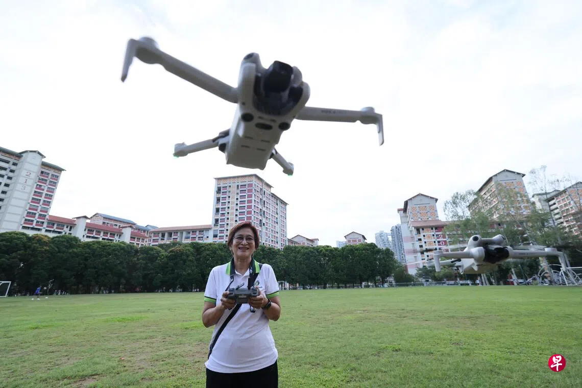 66岁的本地摄影爱好者吴丽珍,10多年前曾荣获美国摄影大师称号,如今百尺竿头,她学起了航拍。