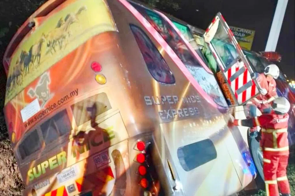 一辆印有“Super Nice”品牌的长途巴士,上星期六(10月11日)凌晨3时许在马来西亚南北大道发生致命车祸。加影警区主任纳兹荣助理总监向媒体证实,这辆巴士包括司机共载有29人,当中有24名马来西亚人和五名新加坡人。一名在新加坡建筑行业工作的59岁马来西亚男子当时坐在前排,因头部重伤当场死亡。其余28名乘客也都受了不同程度的伤。