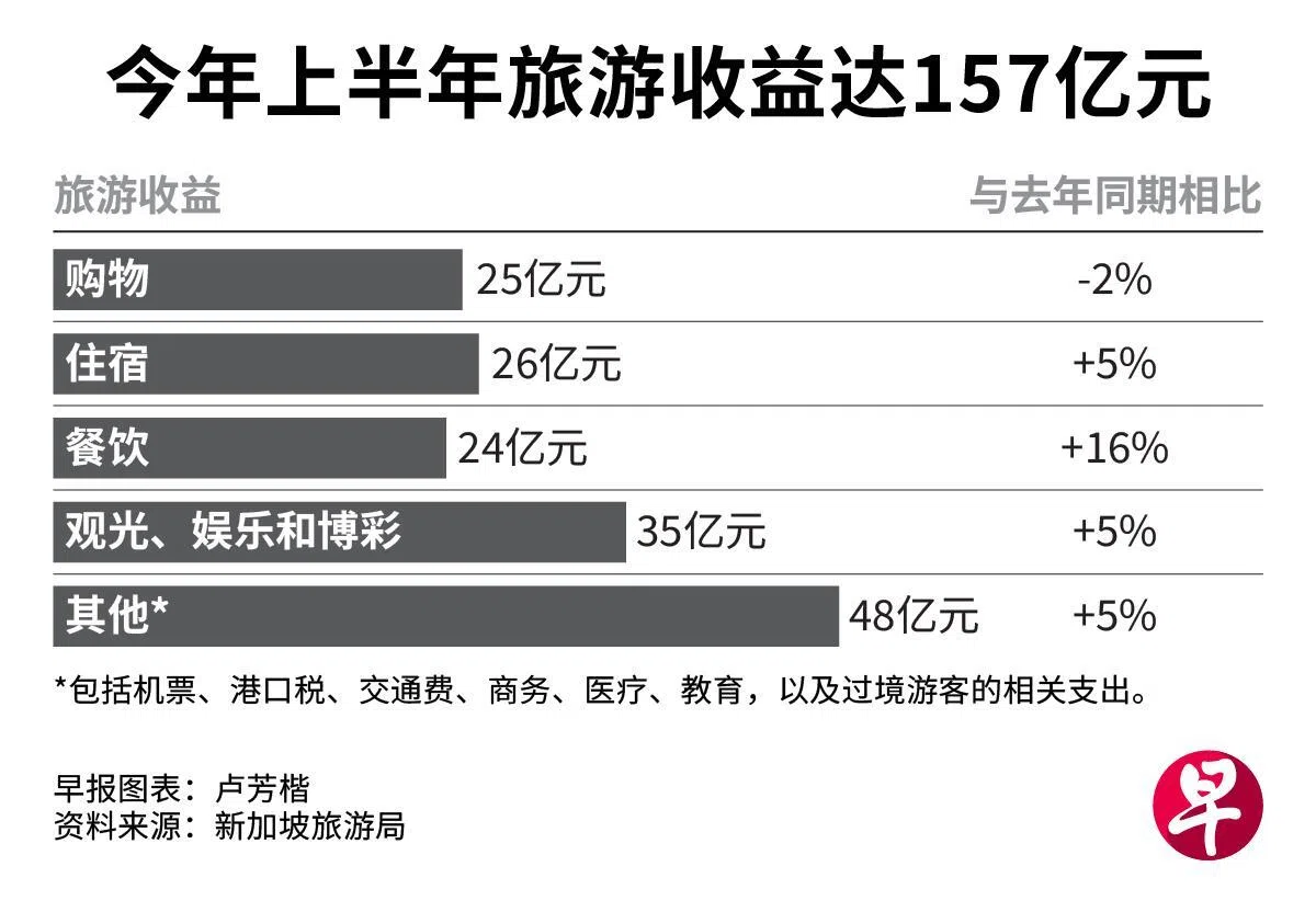 其中,中国、印尼和澳大利亚游客分别带来23亿元、14亿元和10亿元的旅游收益。来自澳洲市场的旅游收益同比增长12%,在各主要消费项目的支出都十分活跃,餐饮业更是大幅增长43%。这与上半年到访的澳洲游客人数持续攀升相呼应。