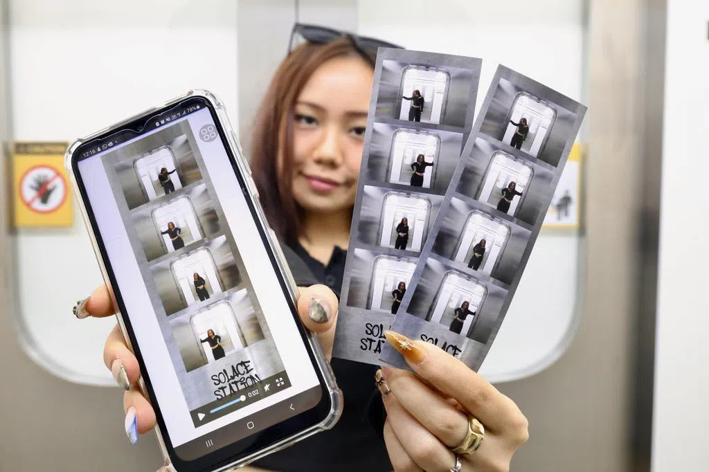 自2022年起,她已拍摄超过120张大头贴,花费近1200新元。“我喜欢尝试不同主题的照相亭,例如地铁主题,能拍出仿佛置身电影《釜山行》般,被丧尸追赶的刺激感。”