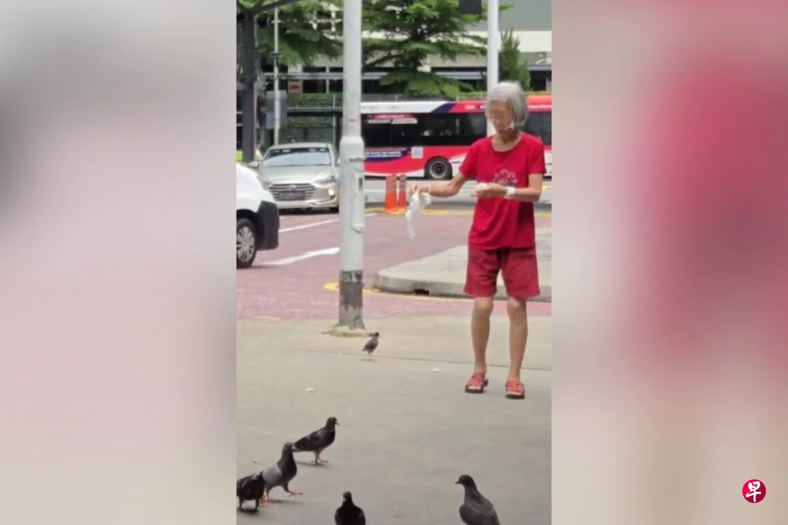 周女士在上星期四(10月16日)下午再次看到老妇的身影。根据她提供的视频显示,老妇被拍到在熟食中心外喂食,导致数十只鸽子飞来觅食。