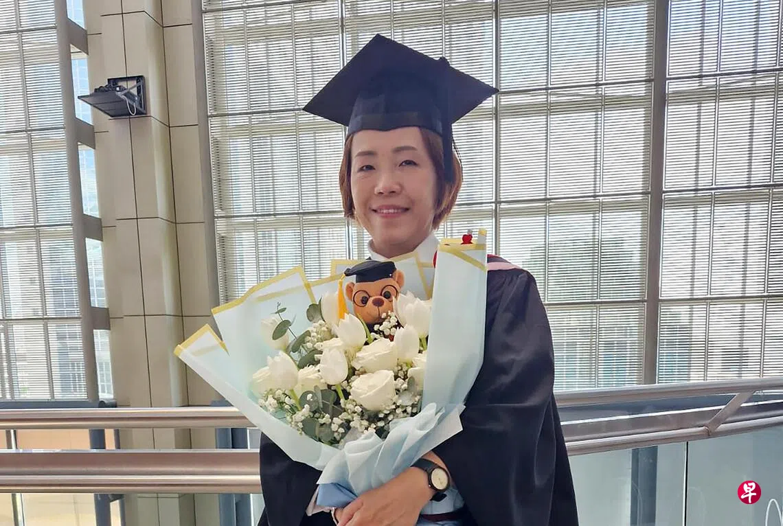 过去两年,她几乎每天放工后都到新加坡社科大学上课至晚上10时,有时为了完成作业还得通宵赶工。
