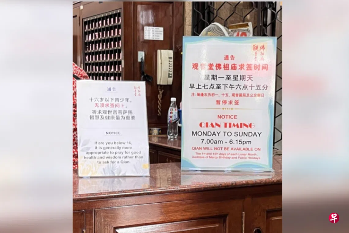 观音堂佛祖庙信托委员会发言人回复《新明日报》询问时强调,并非阻止16岁以下者求签,而是认为这一个年轻群体或许不太需要。