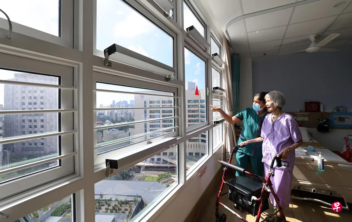 当室内气温超过30摄氏度,仁慈医院刚翻新的15号病房里的窗户便会自动关上,风扇与冷气机会同时启动,把室内温度调节到年长者最感舒适的27摄氏度。