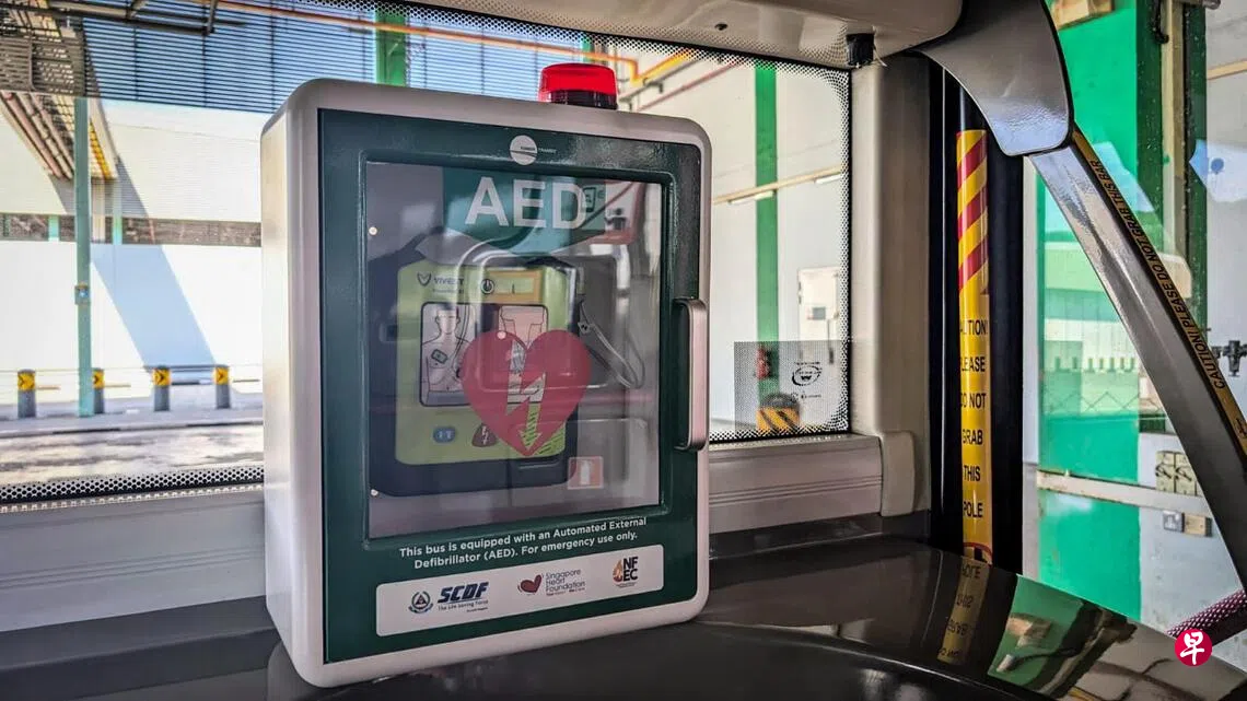 巴士上的自动心脏除颤器由新加坡心脏基金会赞助。
