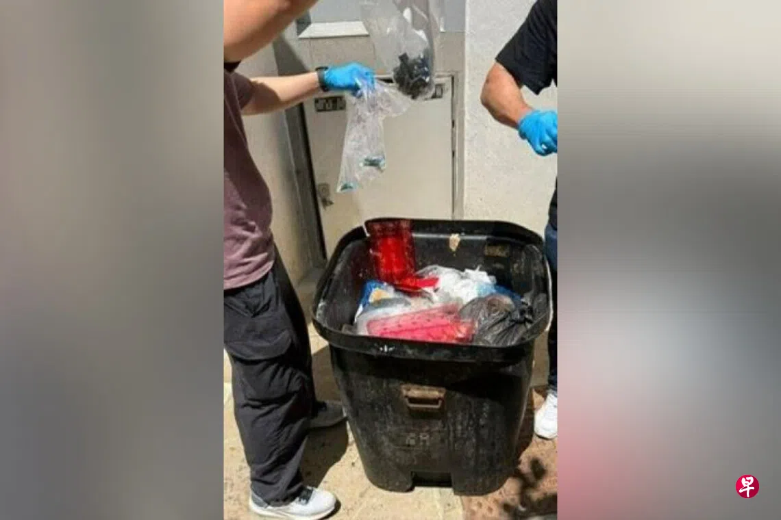 执法人员入屋后,先是搜出多种与电子烟有关的物品及约3900元现金。由于怀疑男子可能将部分物品丢入厨房的垃圾槽,肃毒局人员跟进搜查与单位相连的垃圾槽,果然发现约109个电子烟烟弹和11个相信含有依托咪酯的电子烟。