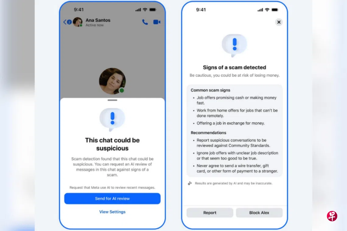 也有骗徒利用脸书聊天室(Messenger)联系目标。辜致嘉说,Meta正在测试新的检测功能,启用后,联系人一旦发送疑似诈骗信息,系统也会发出警告。用户可选择把近期的聊天记录发给人工智能分析,获取简报和下一步建议,例如拉黑或举报对方。