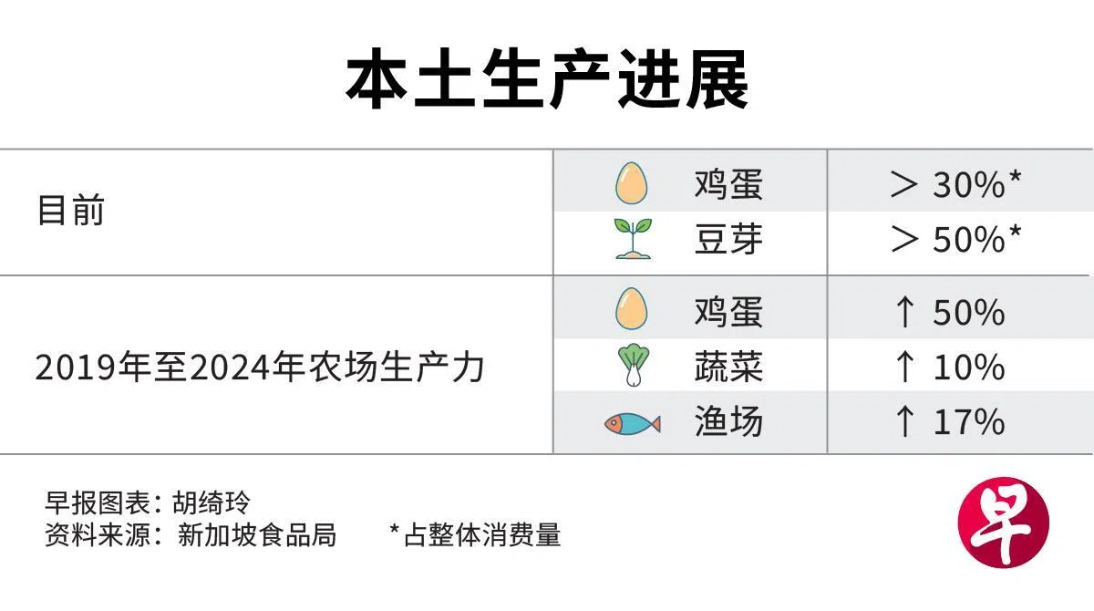 不过,本土食品过去六年的整体生产量,始终不达国人一成的营养需求。去年,时任永续发展与环境部高级政务部长许宝琨医生接受《联合早报》专访时,首次透露政府可能在未来几年检讨食品目标。